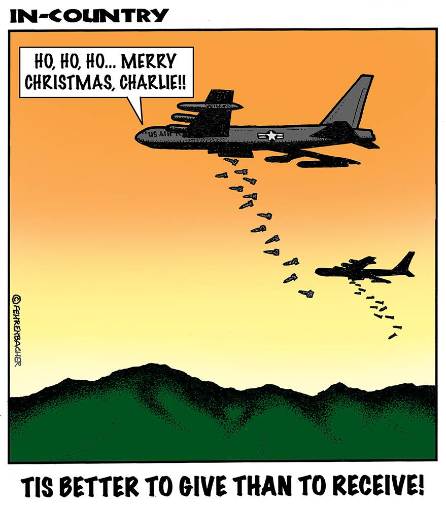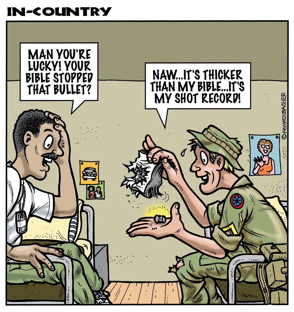 Phil enlisted in the Army in 1965 where you served for years in Vietnam. He became a graphic designer and has worked for the state of Oregon for 26 years. He retired in 2003 and started the Cartoon "In-Country". The cartoons reflect his experiences during his tour of duty in South Vietnam.