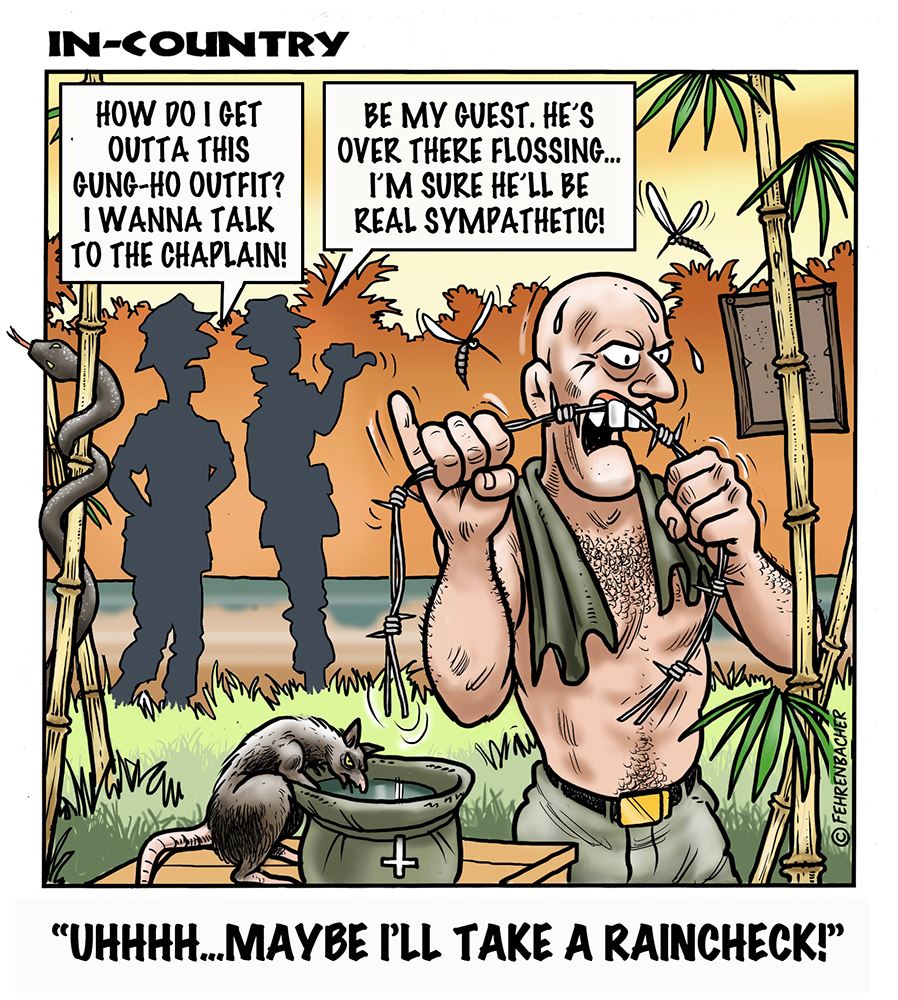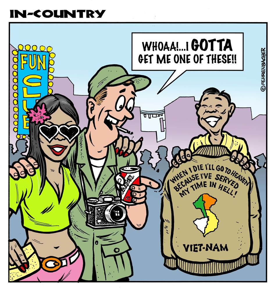 Phil enlisted in the Army in 1965 where you served for years in Vietnam. He became a graphic designer and has worked for the state of Oregon for 26 years. He retired in 2003 and started the Cartoon "In-Country". The cartoons reflect his experiences during his tour of duty in South Vietnam.